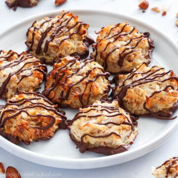 These tasty Almond Joy Cookies are perfect for dessert at home or as part of a cookie platter: These Almond Joy Cookies go well with others like Almond Flour Chocolate Chip Cookies, Vanilla Macarons, and Chocolate Thumbprint Cookies.