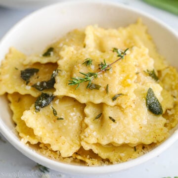 Pro Tip: Don’t rinse the ravioli because this will remove starch that will help the butter sage sauce stick to the pasta.