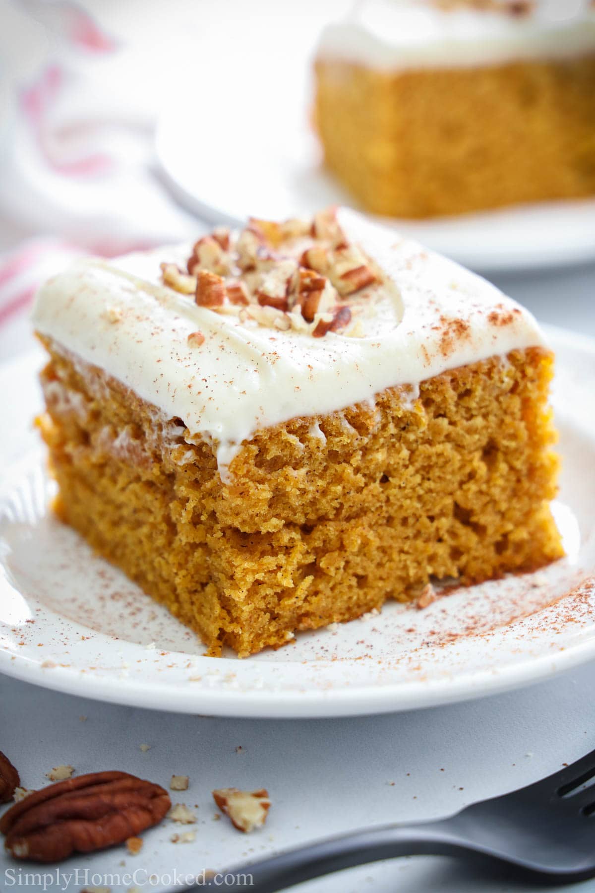- TEXTURE: Moist and fluffy, this Pumpkin Cake is melt-in-your-mouth good. The frosting is thick and creamy, too.