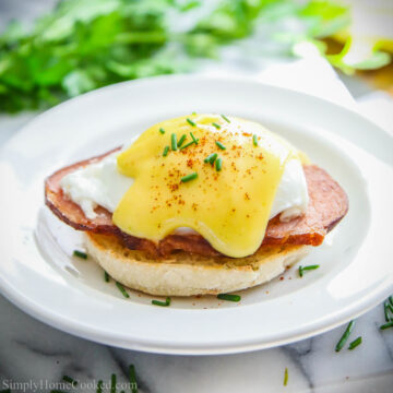This Eggs Benedict recipe is my go-to dish when I feel like treating my family with a fancy breakfast. It takes a little more time than your average eggs and bacon breakfast, but it’s so worth it!