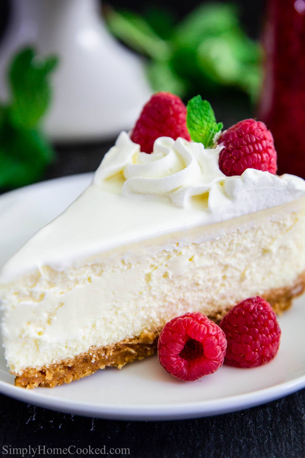 - TEXTURE: This cheesecake is dense, smooth, and extremely creamy with a crust that adds just a touch of crunch.