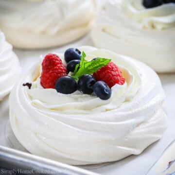 Pro Tip: When piping the meringue, I like to use a Wilton 1E piping tip. It’s perfect for the shape and size I want for these mini pavlova.