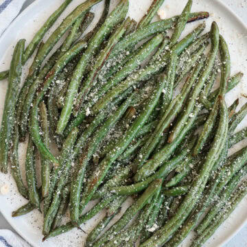 - Add Parmesan (optional): Sprinkle the hot green beans with Parmesan right when they come out of the oven. Taste and adjust seasoning, then serve warm.