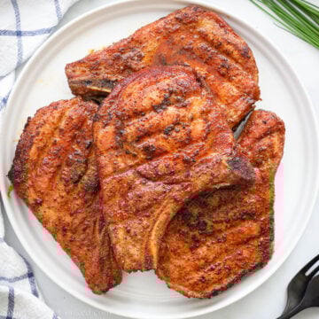 These Smoked Pork Chops are the perfect summer meal. Smoky and deliciously juicy, these seasoned bone-in chops are so easy to make, you’ll love serving them.