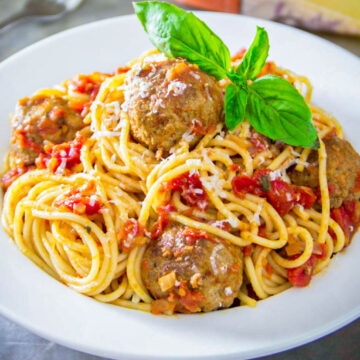 This Spaghetti and Meatballs recipe is going to become a family favorite with the combination of pork and beef alongside classic Italian spices!