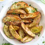 To make them extra crispy, make sure not to overcrowd the potatoes in the air fryer. Leaving enough space between each potato wedge will allow proper circulation of air which creates super crispy potatoes.