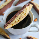 Melt the chocolate chips in a microwave-safe bowl and transfer to a loaf pan. Since the biscotti are long you will need a long dish to dip them in. Once the biscotti are fully cool down, dip them in the chocolate and place them on a sheet of wax paper to set. It will take a few hours for the chocolate to fully set.