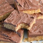 After the chocolate has melted, pour it over the baking dish and smooth it out. Top with a little bit of course sea salt to balance out all the sweetness of the special k bars. Let it set for about 2 hours before cutting and serving.