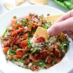 Seed the tomatoes- Remember to seed the tomatoes so you get the juicy outer layer of the tomato without the somewhat slimy innards where the seeds reside. This will decrease water in the dip and also give it a better texture.