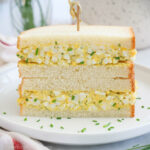 Now spread a little bit of softened butter on each (inside part) of the bread and add split the egg salad mixture on to 2 slices of bread.