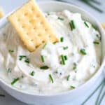 Add 2 tablespoons freshly chopped chives, 1/2 teaspoon salt, 1/8 teaspoon black pepper, and 2 minced garlic cloves. Mix on high speed again, just until the ingredients are well combined. Serve chilled with your favorite vegetables and crackers.