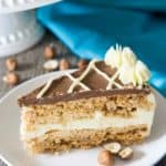 Split the hazelnut meringue amongst the 2 (9 inch) circles. Try to spread within the lines as bet as possible. Bake at 300 degrees Fahrenheit for 10 minutes then drop the temperature to 220 degrees Fahrenheit, bake for another 3 hours and 45 minutes.