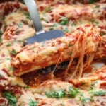 Bake at 350°F for about 20-25 minutes. If you want the cheese to brown a little on top, broil for a few minutes at the end. Once it’s done, garnish with some freshly chopped parsley.