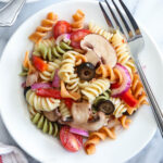 Tri Color Pasta Salad Recipe is a perfect side dish or full meal that is full of vegetables and bright flavors! Follow our easy recipe for a perfect dish.