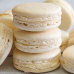 Bake 1 tray at a time for 16-18 minutes. Be careful NOT to underbake or else they will stick to the parchment paper. I found that the second batch that sat out while the first was baking tended to burn a little since it sat out longer. So you may want to remove the second batch from the oven a minute or two earlier. Once the macarons are done baking let them cool down to room temperature.