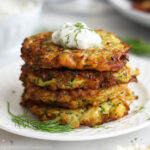 Don't let them overcook- These Zucchini Fritters are not very thick and the higher temperature and oil make cooking happen fast. Keep an eye on them to avoid them burning.